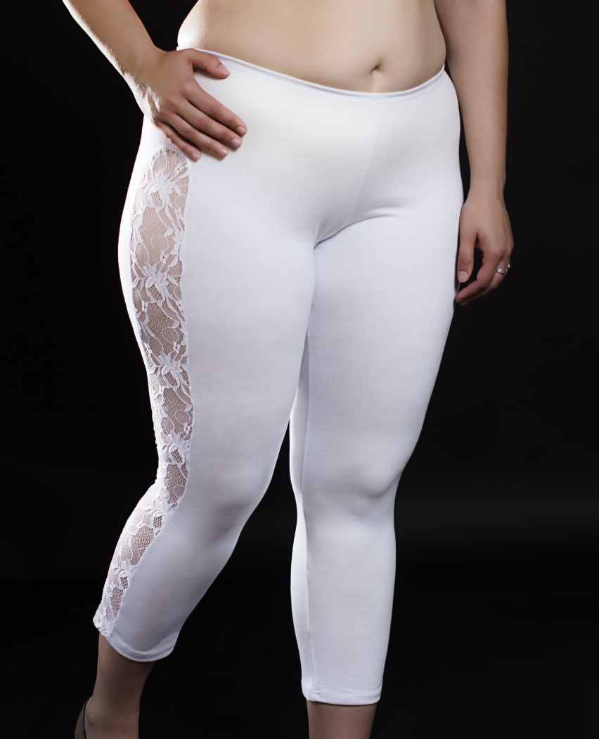 legíny Gizet po členky - biela elastická bavlna s jemnou elastickou čipkou po bokoch