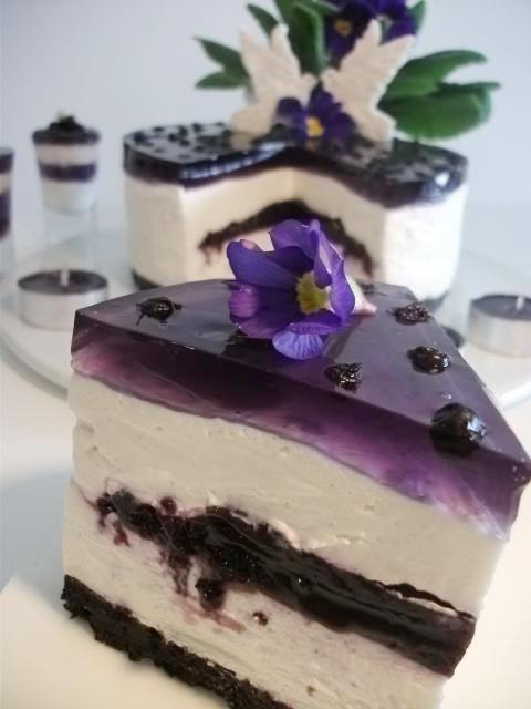 1.Želé ozdoba v orgináli robená s čučoriedkovým želé-tak také nič nemáme(v Poľsku majú jeden druh z názvom Ametyst,čo sa farebne hodí, alebo firma Jell-o má želé z hroznovou príchuťou vo fialovej farbe)