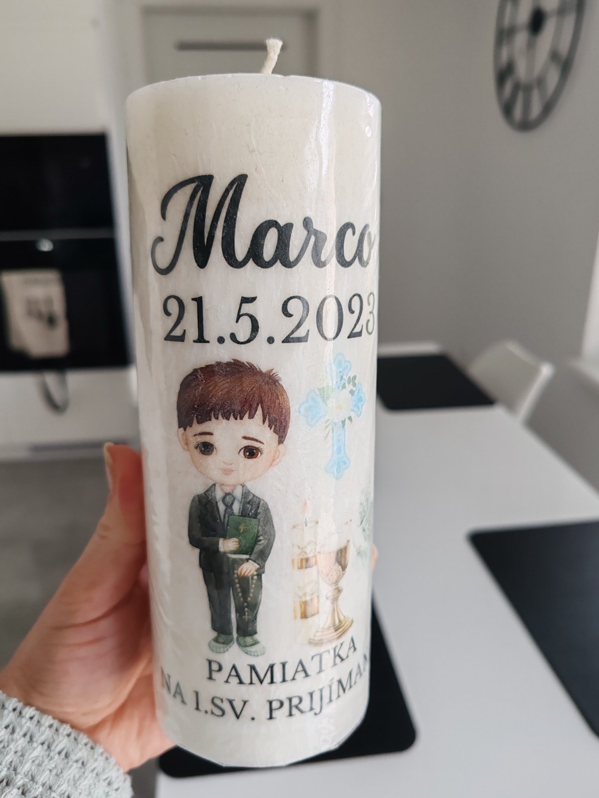 Tortu, retiazku s krížikom, hodinky, ruzencek, taku pamatnu tabulu. Ale dostal od nas retiazku a sa mu raz v škole rozopla a odvtedy sa boji, že ju stratí, tak ju ma doma odlozenu.
