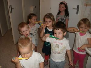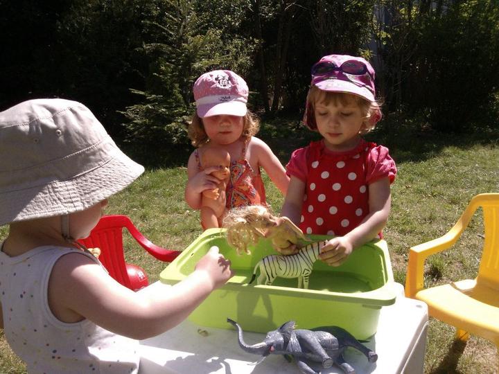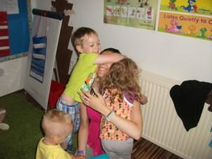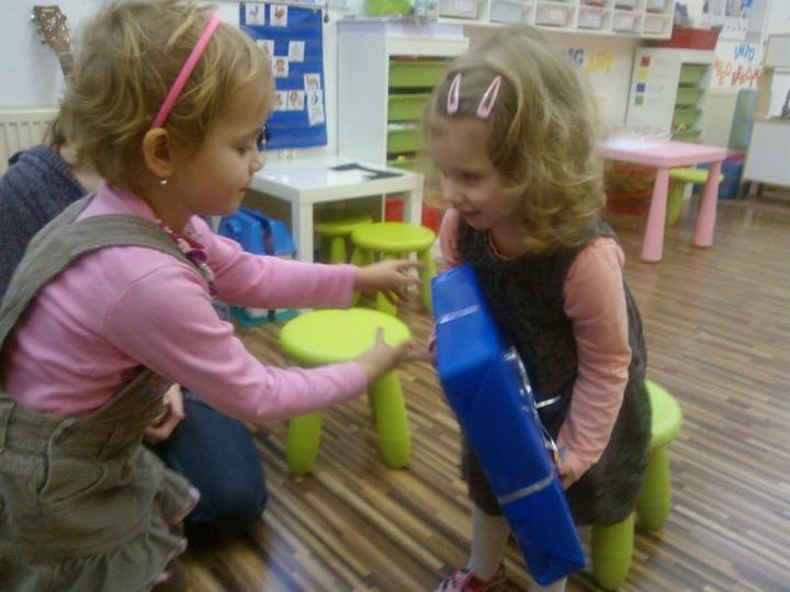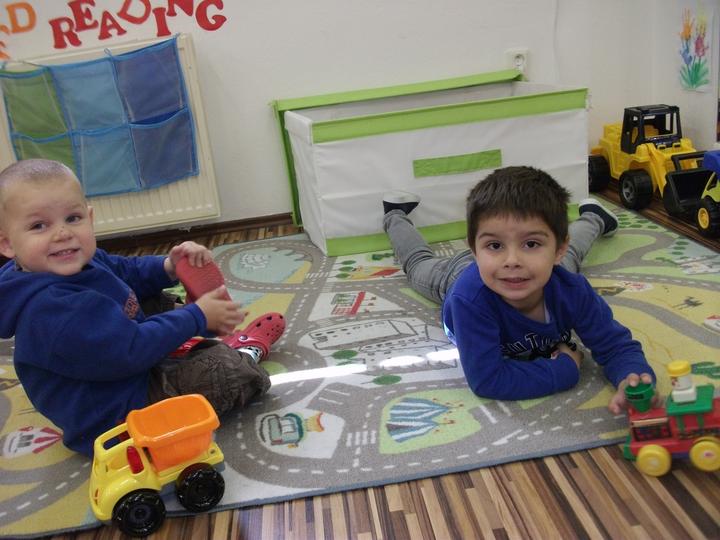 Prvé dni, keď dieťa nastúpi do kolektívu mu to málinko uľahčujeme. V situáciách, kedy ešte potrebuje viac emocionálnej opory na dieťa hovoríme aj po slovensky, ale len do chvíle, kedy sa cíti spokojné a je pripravené sa hrať. V tej chvíli začíname opäť s angličtinou. Robíme to tak preto, lebo pocit bezpečia dieťaťa a emocionálna pohoda sú naše priority.