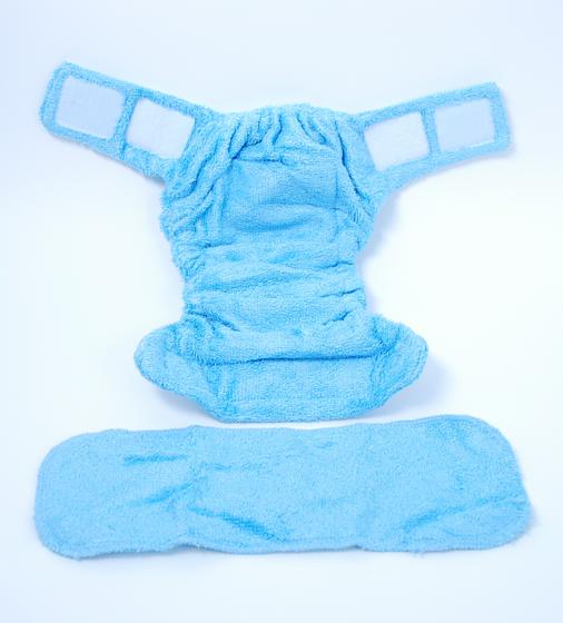 Nohavičky sú z 3 vrstiev. 2 vrstvy bambusového tkaného froté (90% bambus/10% polyester), medzi nimi 1 vrstva mikrovlákna. Vkladačka - dlhá sacia vrstva je z 2 vrstiev bambusového froté. Poskladáte si ju podľa potreby. K nohavičkám je prišitá z jednej strany. Zapínanie na suchý zips. Viacveľkostné - veľkosť 2 (od 8 – 15 kg).