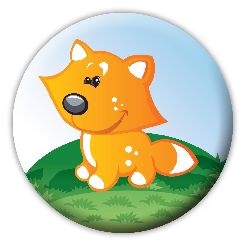 Líška. Priemer 37mm - 1,35/ks, priemer 56mm - 1,50/ks (kompletný cenník www.najodznaky.sk)
