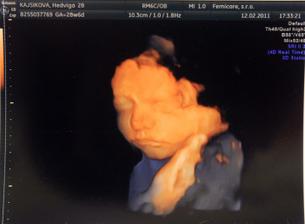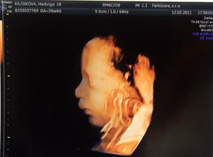 12.02.2011 dnes bol super deň, po dlhej dobe sme videli malého,mala som masáž bruška :D nožičky mal až pri hlavičke čo vystrájal netuším, aj sa mu štikútalo,len ja som nič necítila :°( ale super správička drobček je otočený hlavičkou dole,28+6tt máme 1197g a všetko vyzerá v poriadku :°) aj fotos nám pán dr. dal :°)