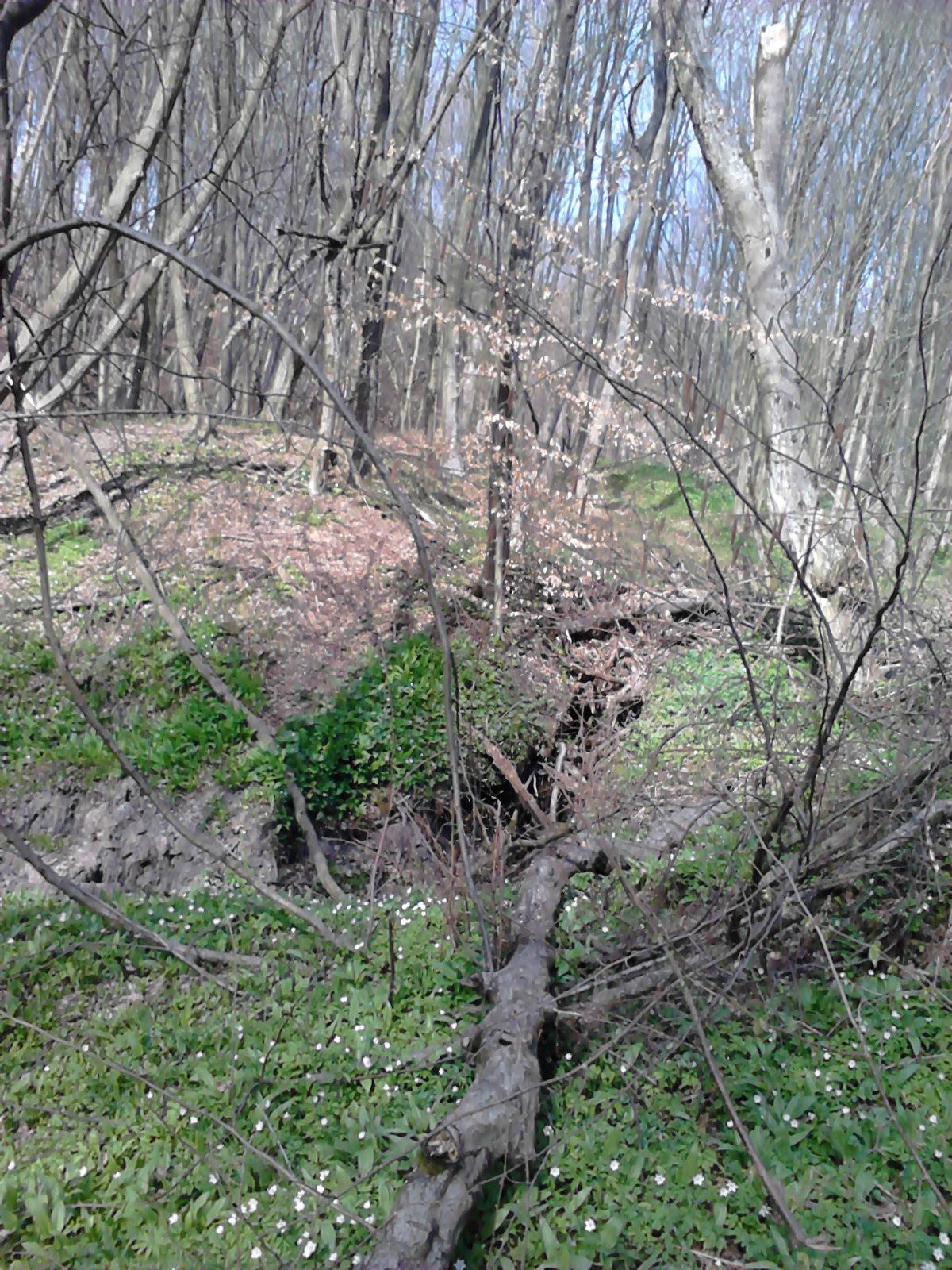 je tu potočik a už začína medvedí cesnák, to čo kvitne to nieje cesnák, ten kvitne ináč, sú to kvety... nie konvalinka :-)