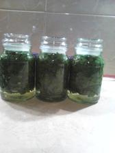 Robila som zo slnečnicovým olejom ďalšie s olivovým ale to sa mi nepáči, lebo olivový sa vchladničke akoby vyzrážal, ale na oko to nieje pekné. Robila som čisté, ďalšie so slnečnicou tiež medv, cesnák + vlašské orechy. Aj ked robila len tak od oka a je v pohode. Ešte stale mám v chladničke zásoby z minulého roka... ... Ked odoberiem zo sklíčka malo, že nespotrebujem celé tak pästo pekne zarovnám a pre istotu kvapnem pár kvapiek oleja .