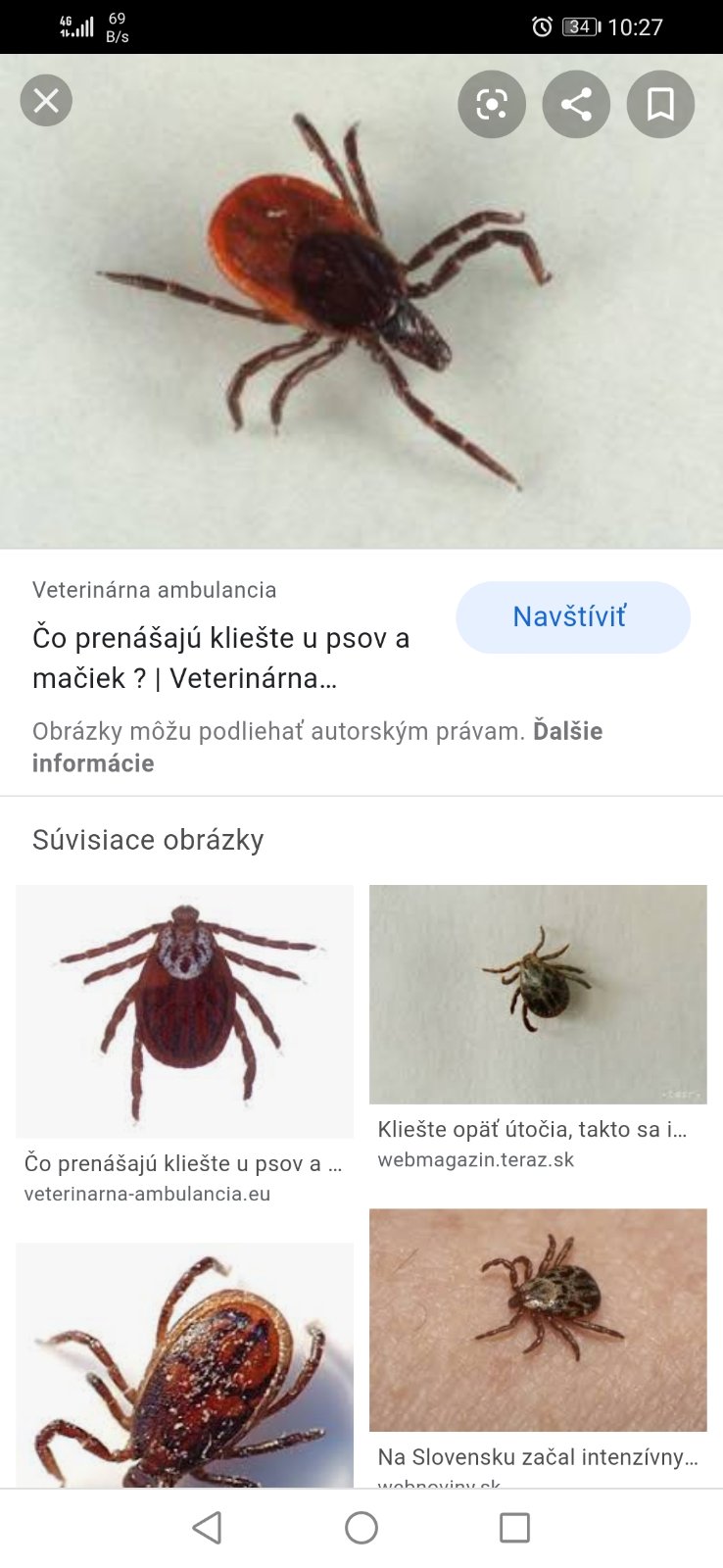 Je to kliest, my tychto mavame na zahrade vela. Muz postriekal teraz nejakym pripravkom celu zahradu, lebo uz ho chytil minuly rok aj on, aj na psovi sme nasli bezne kazdy den aj troch🥺 klieste su moja smrt, neznaaaaasaaaaaam, a zvlast tie nacucane, napina ma, ked ich vyberam, blee🥴