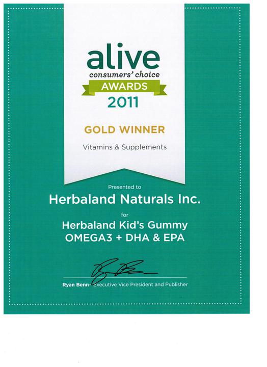 HerbaLand želatínové vitamíny sa stali v roku 2010 víťazom Alive Magazine Gold Award v kategórii výživových doplnkov a získali tak ocenenie Produkt roka 2010