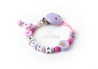 Zobrazená retiazka na cumlík s menom Vášho dieťatka je mnou ručne vyrobená a zodpovedá Európskej norme Európskeho úradu pre bezpečnosť DIN EN 12586.