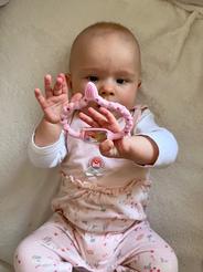 Hryzadlo zaujalo po otvorení krabičky najprv mňa, potom dcérku a snáď každého, kto ho videl, no najviac svokru :)). Je neokukané, jedinečné, multifunkčné, ľahké, ľahko uchopiteľné pre malé rúčky. Kefka a jej druhá masážna strana je super. Pekne ňou masírujem ďasná a dcérke sa to páči. Potom schytí a masíruje si ich sama :)). Minihrkálka má príjemný zvuk.
