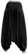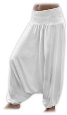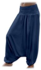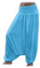 Nohavice sú dostupné v dvoch veľkostiach: S/M a L/XL. Turecké nohavice, haremové nohavice, sultánky, alladinky, sukňonohavice - týmto všetkým môžete pomenovať tieto tehotenské nohavice. Sú špeciálne navrhnuté, pre maximálne pohodlie nastávajúcich mamičiek. V pase sú riešené mäkkými 1mm gumičkami - tzv. žabičkovanie - vidieť na foto, ktoré spolu tvoria mäkký lem. Pás môže obopínať bruško, ale môžete ho ponunúť aj pod bruško. Nohavice majú rozkrok niekde medzi kolenami a kotníkmi, nemusíte riešiť, či Vám sedia na zadku alebo nie. Nikde netlačia, sú široko strihané, neobmedzujú v pohybe, pôsobia žensky. Na nohách je látka strihovo o trochu dlhšia než uprostred, zakončená slabou gumičkou. Nohavice môžete nosiť ako dlhé - ako na foto, ale ak ich vyhrniete pod kolená (vďaka mäkkým gumičkám Vám tam budú držať a nebudú tlačiť) a vznikne Vám balónová "sukna" v 3/4 dĺžke. Úplet je z materiálu: 92% bavlna + 8% elastan. Rozdiel vo veľkostiach je v pase. Nohavice sú vhodné pre vysoké dámy.