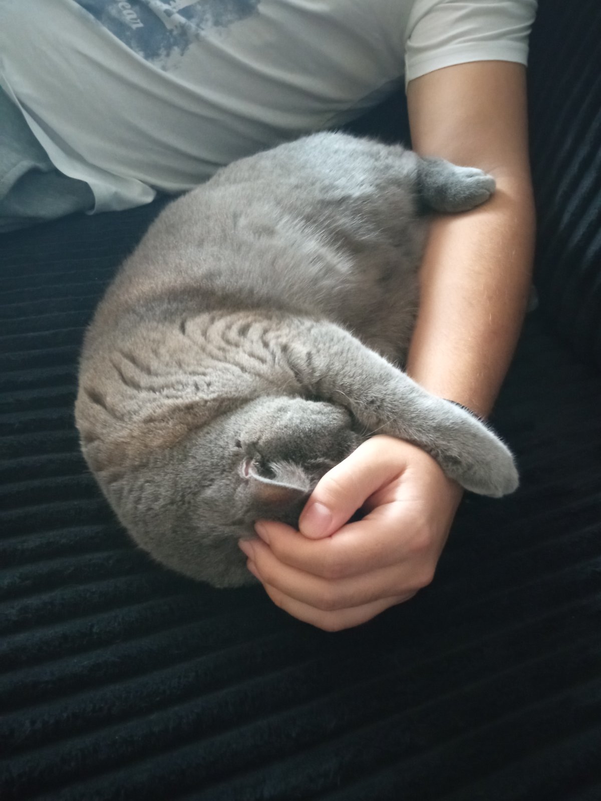 Strašne rada takto spí..čelo si oprie o dlaň a labkami objima našu ruku