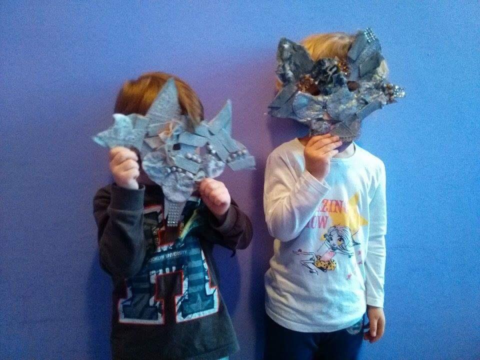 Fasiangy#masky #asamblas#lepenie odpadoveho materialu a malba#kozliatka a vlk