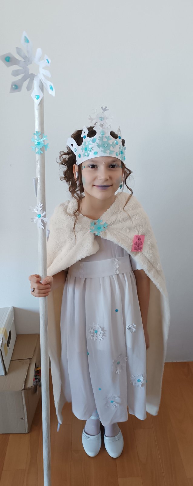 Naša ľadová kráľovná 🩵👑 🙂 pár hodín vystrihovania,farbenia,lepenia, našívania...ale za tú radosť z 1.miesta to stálo 😊