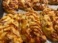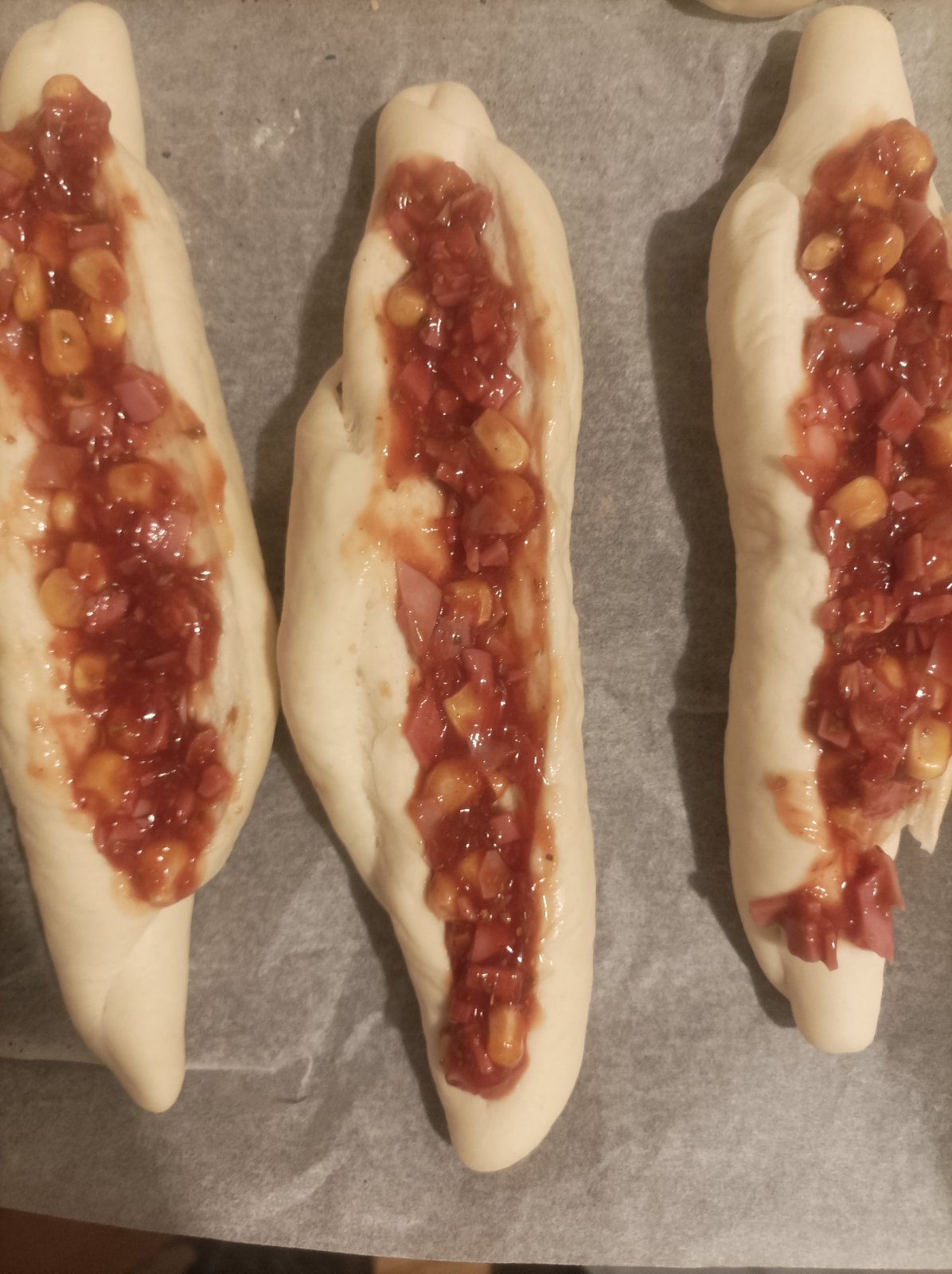 @zuzubb007 dakujem 😊 cesto robim ako na klasicke rozky a zemle co robievam,neviem ci treba aj to.Po vykysnuti rozdelim na bochnicky,tvarujem rozky-rozvalkat do tvaru trojuholnika a stocit od sirsej casti k uzsej.Necham podkysnut na plechy,potom zvrchu pozdlzne nakrojim cca 0,5 cm do hlbky a naplnim naplnou.Poukladam platky syra a sup do truby.Ja peciem na 200 stupnov cca 20 minut.Napln robim od oka-davam kecup (ak nie je domaci tak odporucam kvalitnejsi ako Heinz a podobne nech nie je ako voda 😀) pokrajanu sunku na kocky ak mam,kukuricu-davam mrazenu,susene oregano,susena cibula,trocha soli podla chuti.Tu je foto ako su rozky naplnene, na ne uz len syr