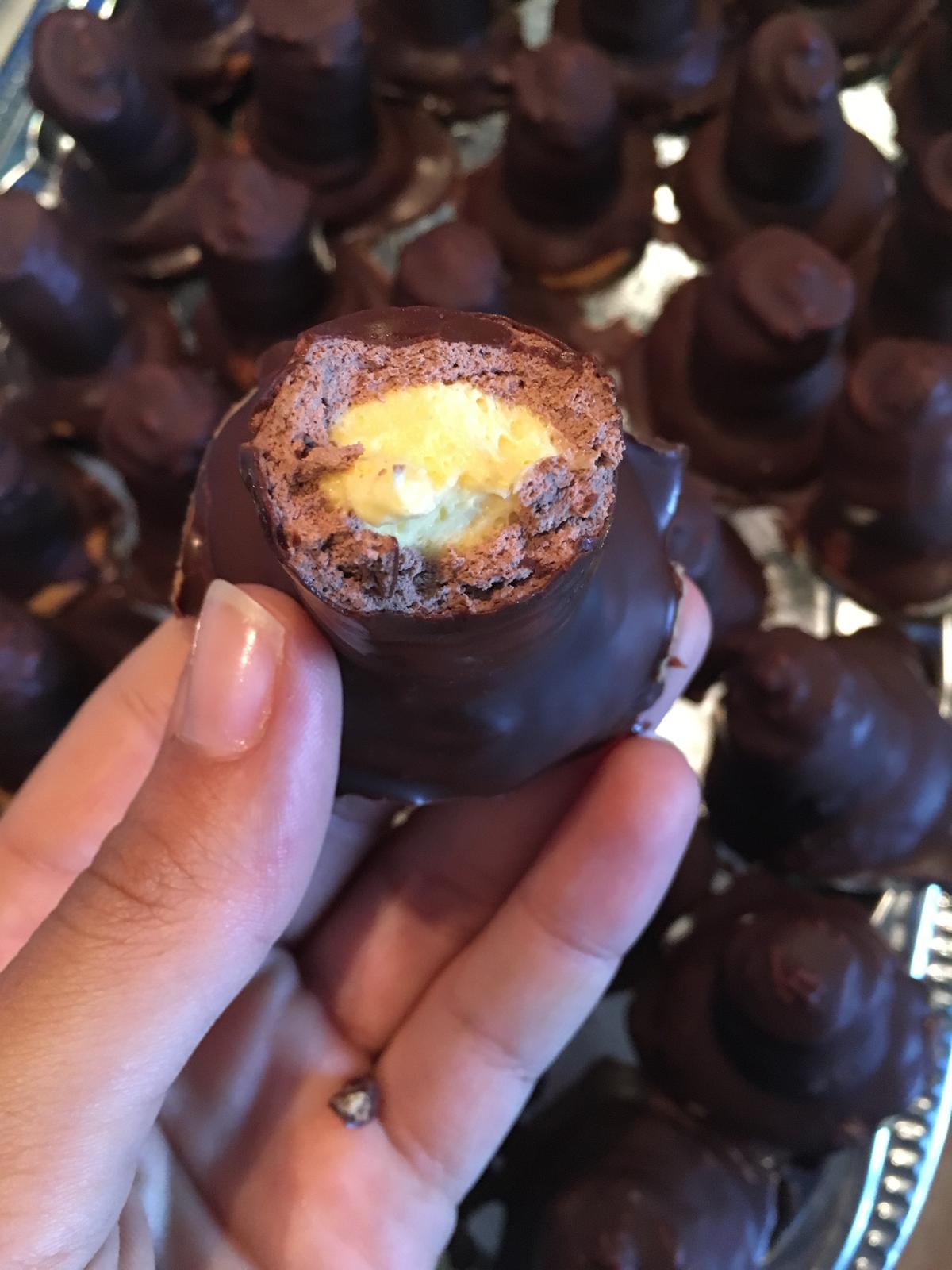 Ked piskoty uschnu s cokoladov tak si daj do vrecka alebo pistole ten nadstavec na spice a striekaj rurky na piskot.Nastriekaj si plech a daj na balkon stuhnut alebo do ladnicky.Nezabudni si nechat nejaku zmes na uzatvorenie spicov,na hlavicky...Ked budes vidiet ze ti to dobre stuhlo a stoja pevne,napln ich konakovou zmesou (ja lejem z nadobky so sosacikom),asi tak 0,5 cm od vrchu nechaj miesto,nelej do plna uplne.Potom si vymen na saciku koncovku na zdobenie alebo s hviezdickou alebo aku mas a urob ukoncenie spicu,zatoc hlavicku.Na to prides ako sa to robi ked si doma obcas nieco upecies