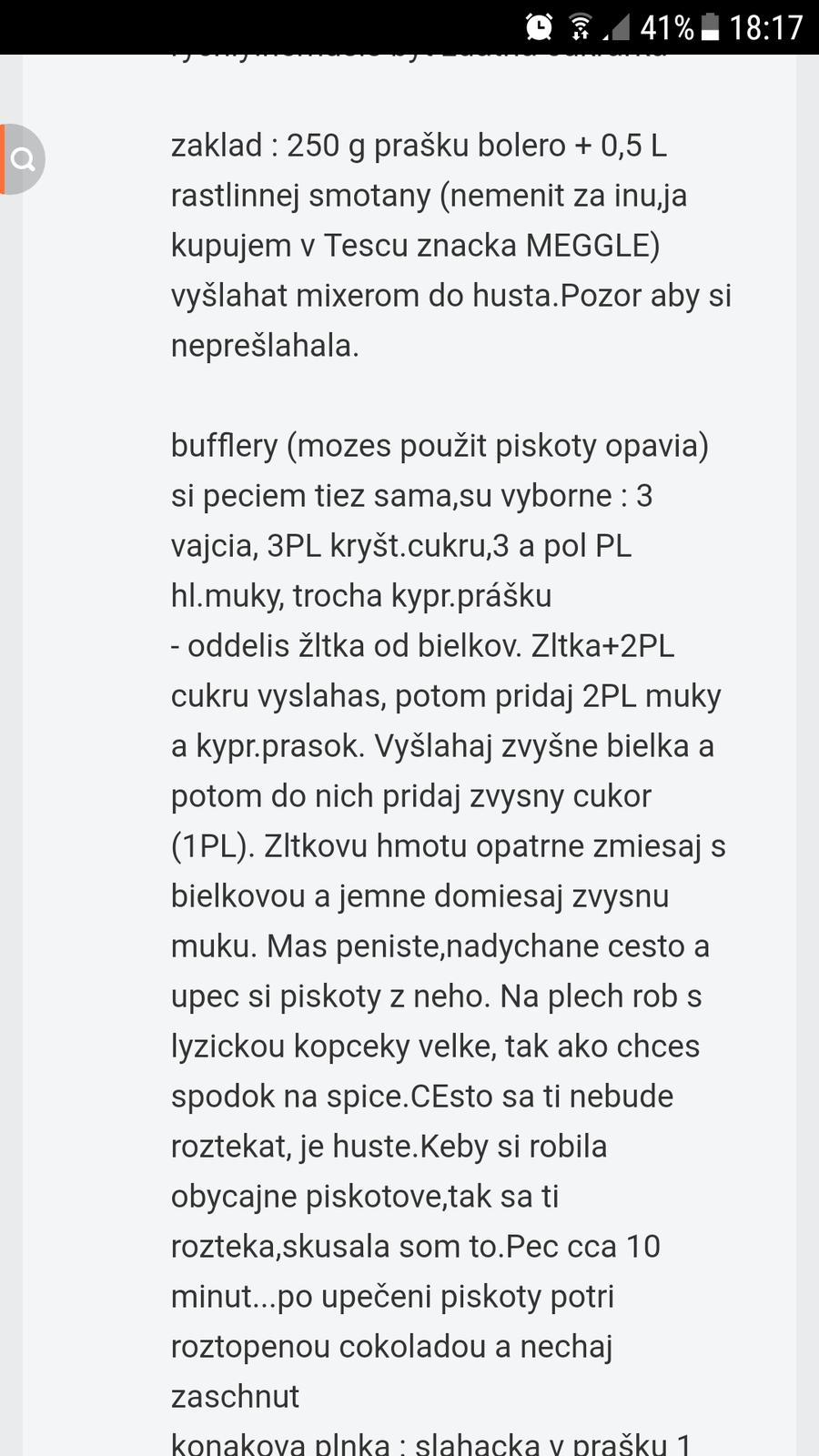 bufflery (mozes použit piskoty opavia) si peciem tiez sama,su vyborne : 3 vajcia, 3PL kryšt.cukru,3 a pol PL hl.muky, trocha kypr.prášku