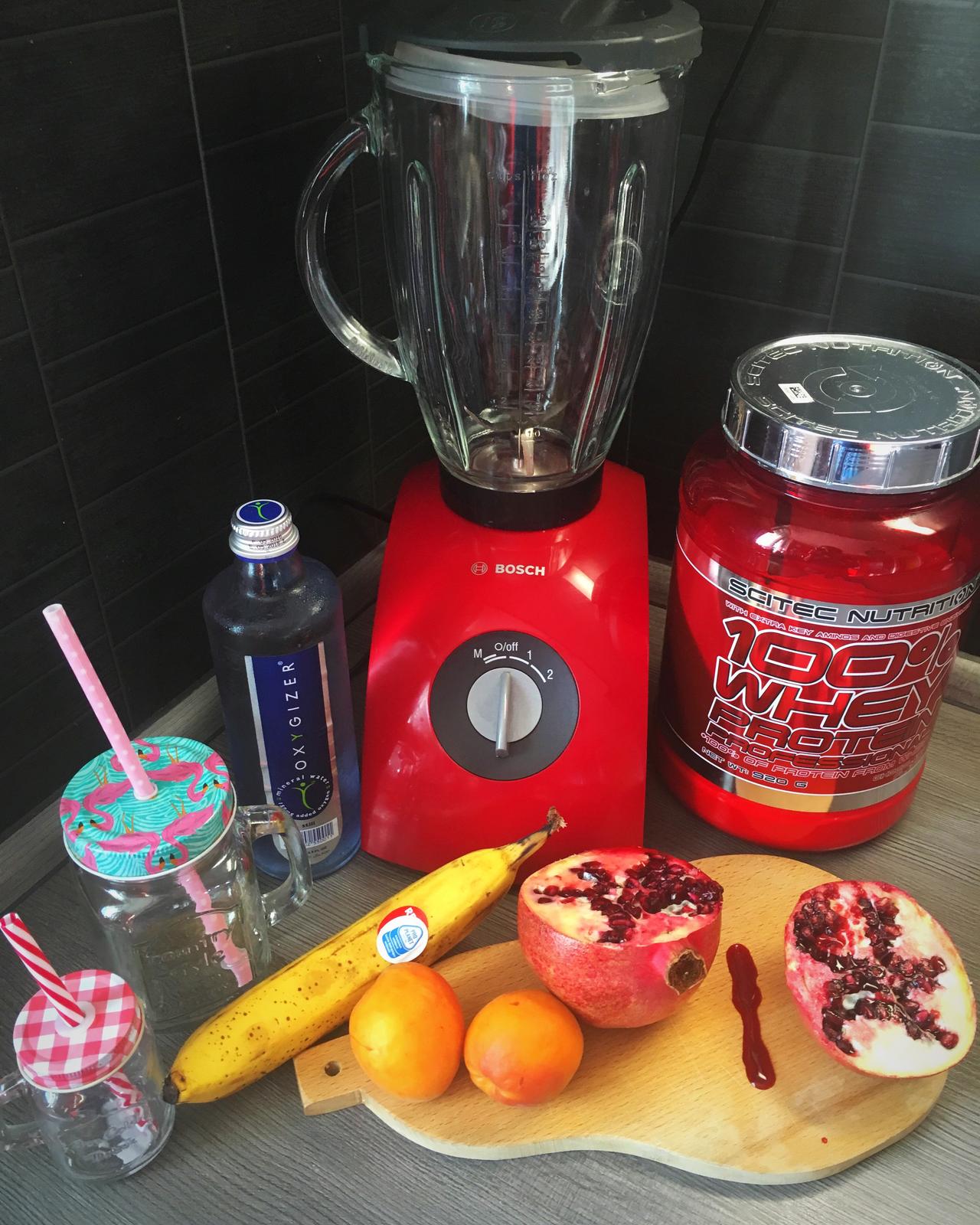Dnešne proteinove raňajky mixovane s davkou okysličenej vody Oxygizer 🏋🏼🍎🍑🍌