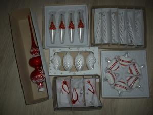 my sme mali minulý rok túto kombináciu, ale vôbec sa nám k interiéru nehodila, inak veľa pekných - takých origoš bielých zdobených gulí, špicov a iných som si nakúpila v kvetinárstve vedľa Štefánky, všetko tiež sklenené, pozri aj tam, fakt tam mali krásne veci.tento rok chcem viacej "prírodný" stromček