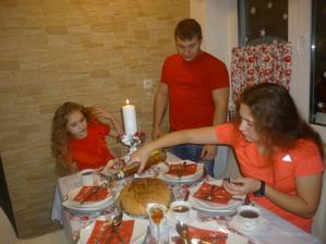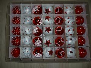 no zas áno to je horšie, čo mála, ja som mala všetko sklenené, aj také srdiečka - ako keby čipkované, aj gule kamienkami zdobené, všeličo tam mali, také origoš, ako je to pekná kombinácia červeno-biela, len nám k tej čerešni, k dlažbe a tomu kameňu nakoniec tá biela nešla, tak chcem dačo hnedo - červené, červené gule a hnedé drevené ozdoby, tak uvidím, ale ty to budeš mať pekné ako vždy!