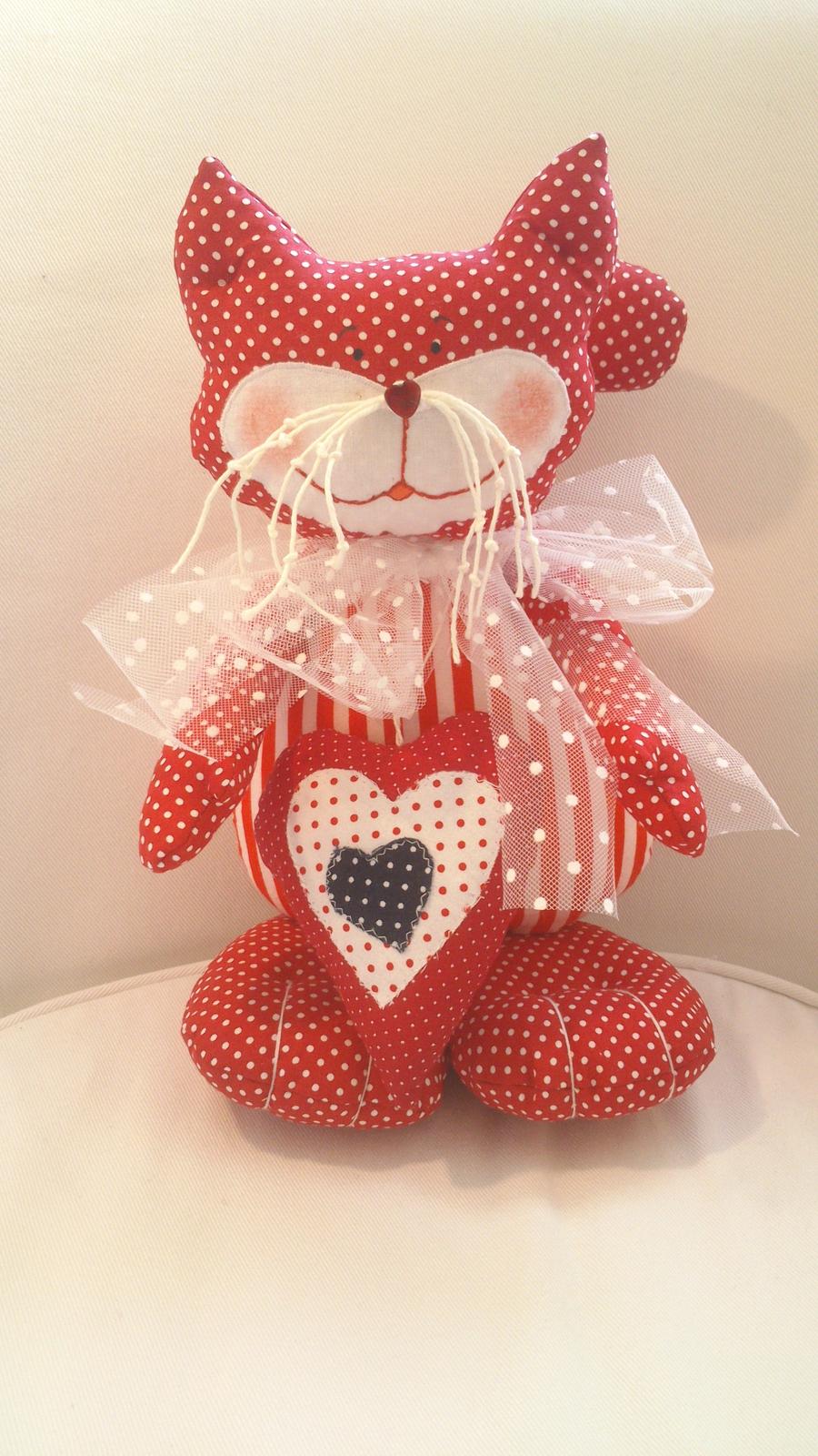 Mačička s levanduľovým srdiečkom - vysoká je 35 cm.
