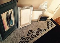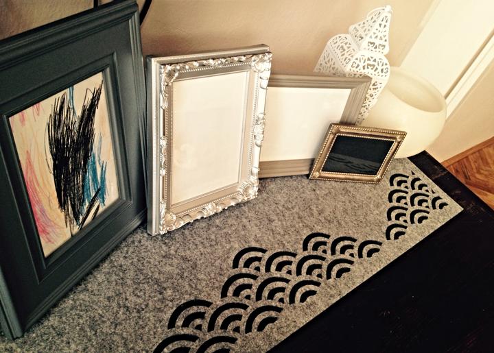 biely svietnik PEPCO a obrus na prestieranie tiež PEPCO, ako aj stredné dva rámiky