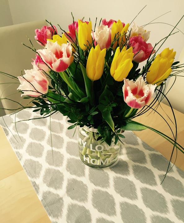 Nadekorovaný jedálenský stôl od @tamikau na ktorom je PEPCO obrus a veľký svietnik využitý ako váza.