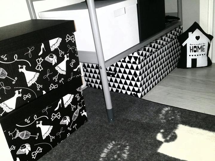 čierno-biela chodba od @marrrrrry kde použila PEPCO vzorové krabice a zarážku dverí - domček