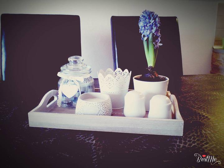 Jedálenský stôl od @tinulka31 zdobí obľúbená PEPCO tácka na ktorej je z PEPCO kvetináč, sviečka, dóza