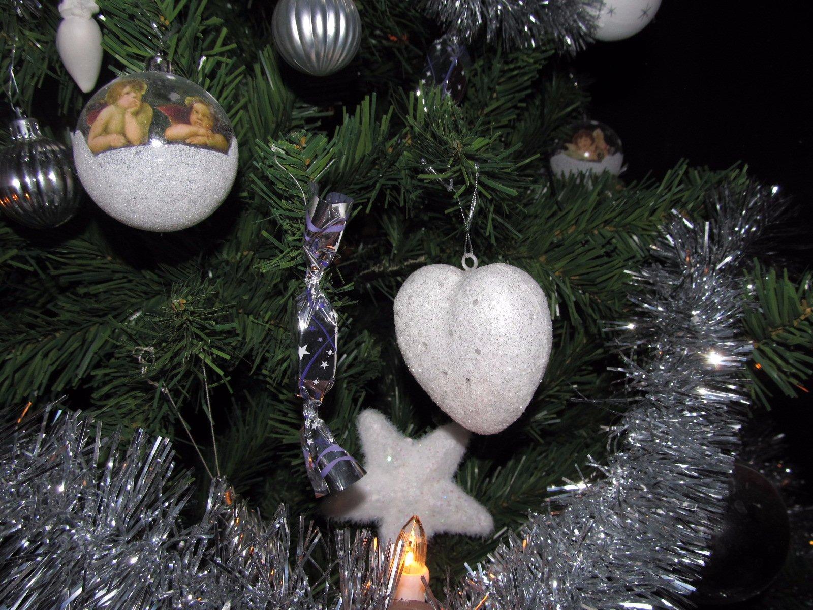 Vianočný stromček, na ktorom @ivetka1981 použila PEPCO ozdoby: hviezdičky,srdiečka,gulky s anjielikmi,vtáčik,pierková girlanda