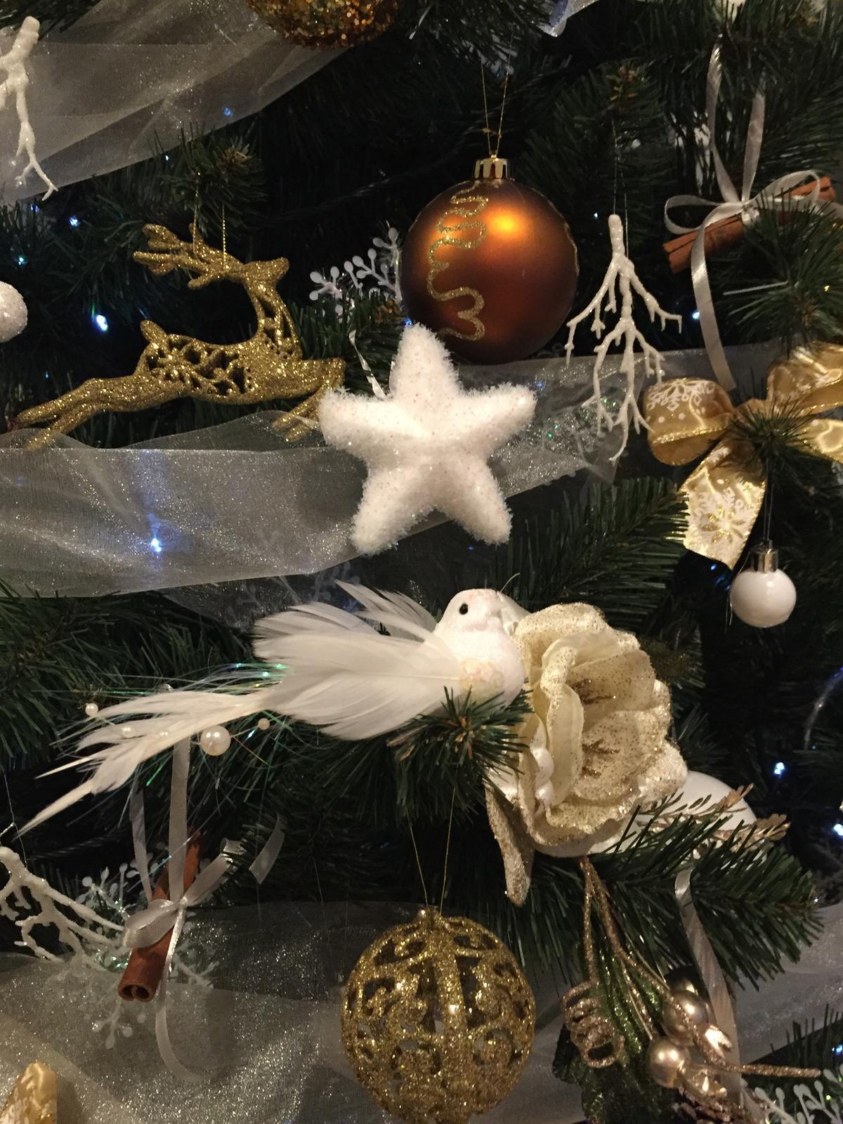 VIanočný stromček od @slavikovapetra na ktorom použila ozdoby z PEPCO: gule, hviezdičky, jelenčeka