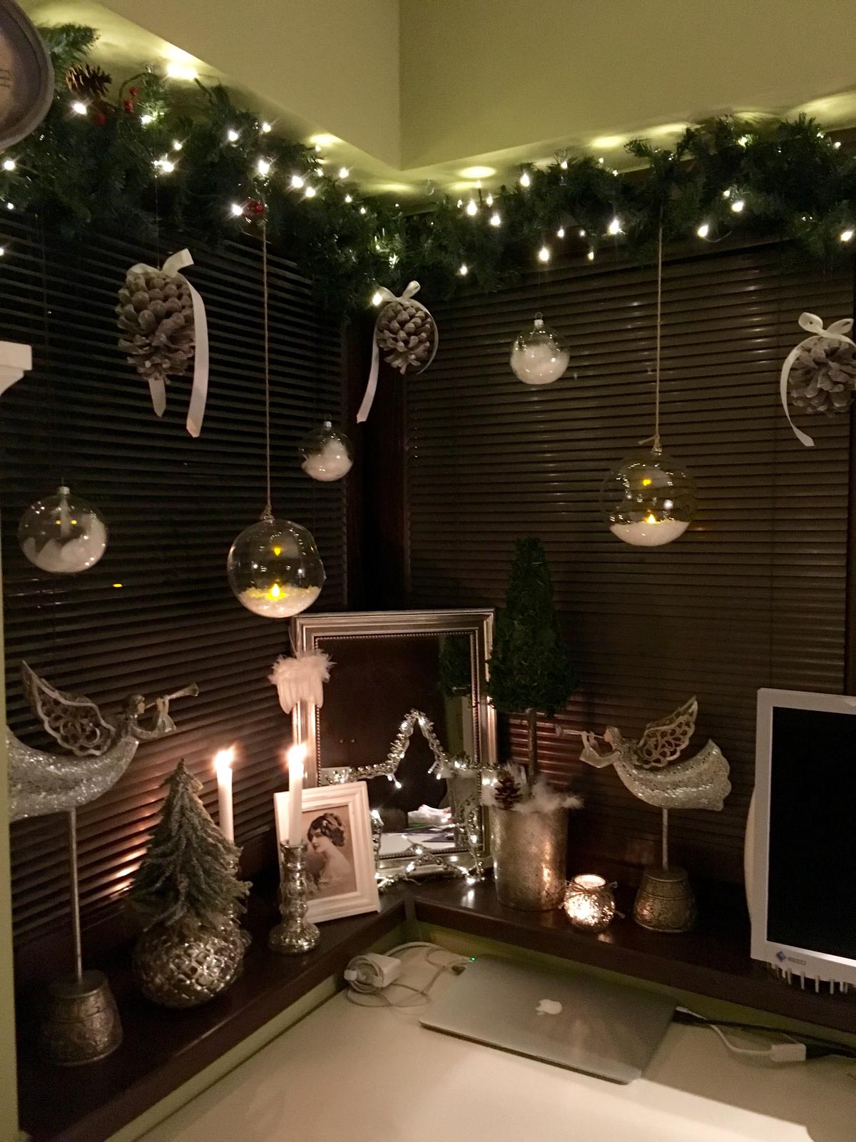 Vianočná výzdoba okna od @imartie , kde som použila z PEPCO: sklené gule s pierkami, dva vysoké svietniky, pierkovú reťaž v kvetináči, rámik. zrkadlo