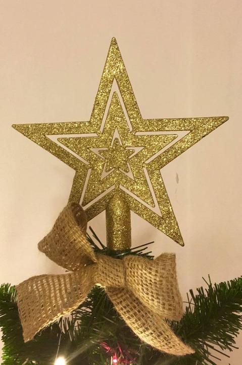 Vianočný stromčeky od @tanickats na ktorom použila ozdoby PEPCO: hviezdu na špici, všetky gule, malé hviezdičky a biele svetielka