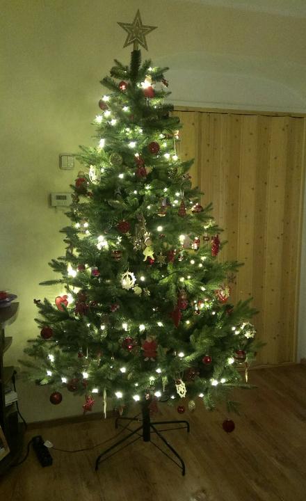 Vianočný stromčeky od @laurita_ na ktorom použila ozdoby PEPCO: gule, mašle, anjelikov, srdiečka, šíšky, sobíkov a vyrezávané ozdoby