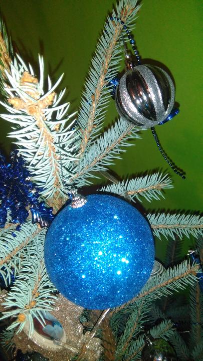 Vianočný stromčeky od @zfialka na ktorom použila ozdoby PEPCO: modré a strieborné gule, modré hviezdy, modrých Santov, srdiečko, vločky a špic na stromčeku - hviezda