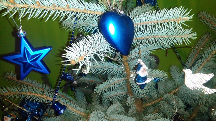 Vianočný stromčeky od @zfialka na ktorom použila ozdoby PEPCO: modré a strieborné gule, modré hviezdy, modrých Santov, srdiečko, vločky a špic na stromčeku - hviezda