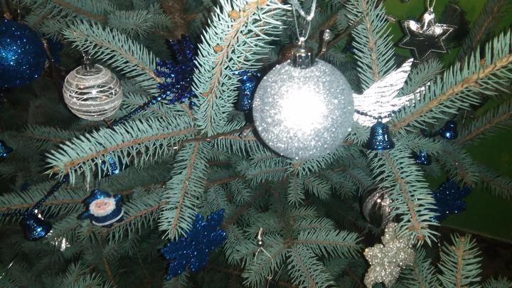 Vianočný stromčeky od @zfialka na ktorom použila ozdoby PEPCO: modré a strieborné gule, modré hviezdy, modrých Santov, srdiečko, vločky a špic na stromčeku - hviezda