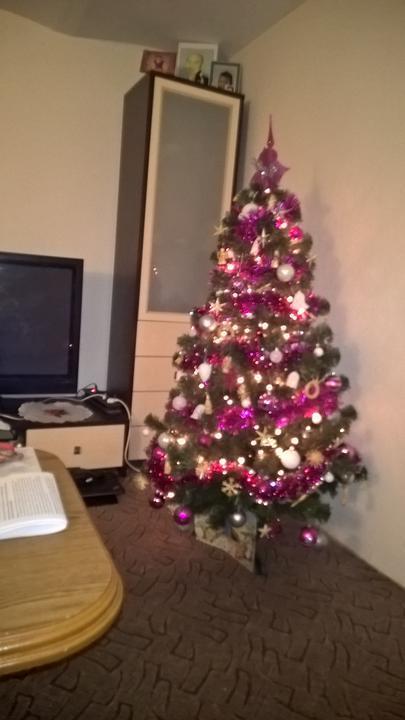 Vianočný stromčeky od @betunka39 na ktorom použila ozdoby PEPCO: svetielka a biele guličky