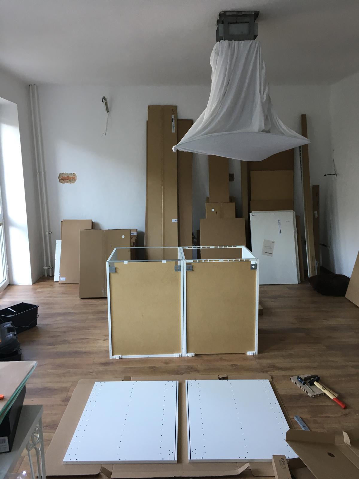 prisla kuchyna, pol dna sme ju vynasali hore - ja a tato a zacali skladat