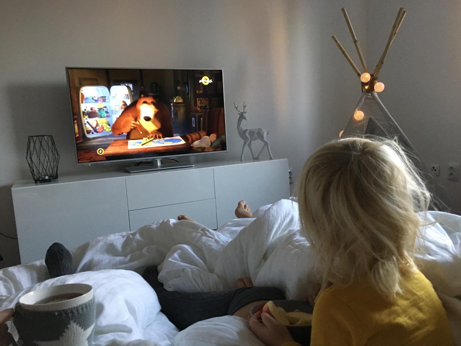 Máša a medveď nás baví 👪❤️ vďaka za rozkladacie sedačky 🙏 krásne uzimené ráno vám prajeme 😘