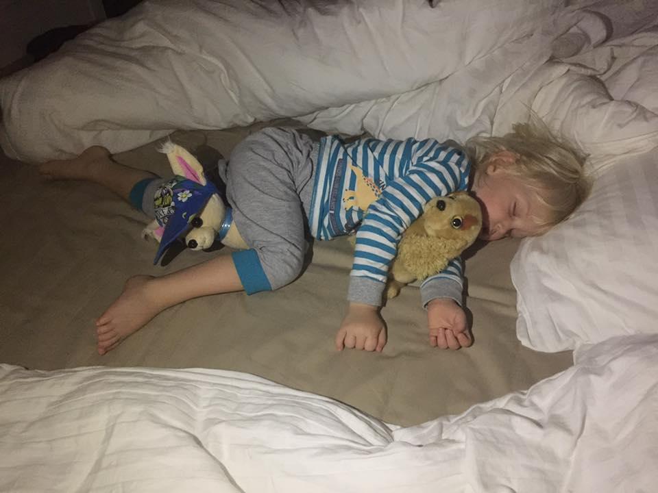 Tak nielen, že musíme každý deň nosiť všetky veci zo škôlky domov, dnes k nám pribudli ešte dvaja psy, lebo údaje sú jeho, veľmi sa ľúbia a dokola ich pusinkuje navzájom. Takto spoločne zaspali. 😀 Haf Haf