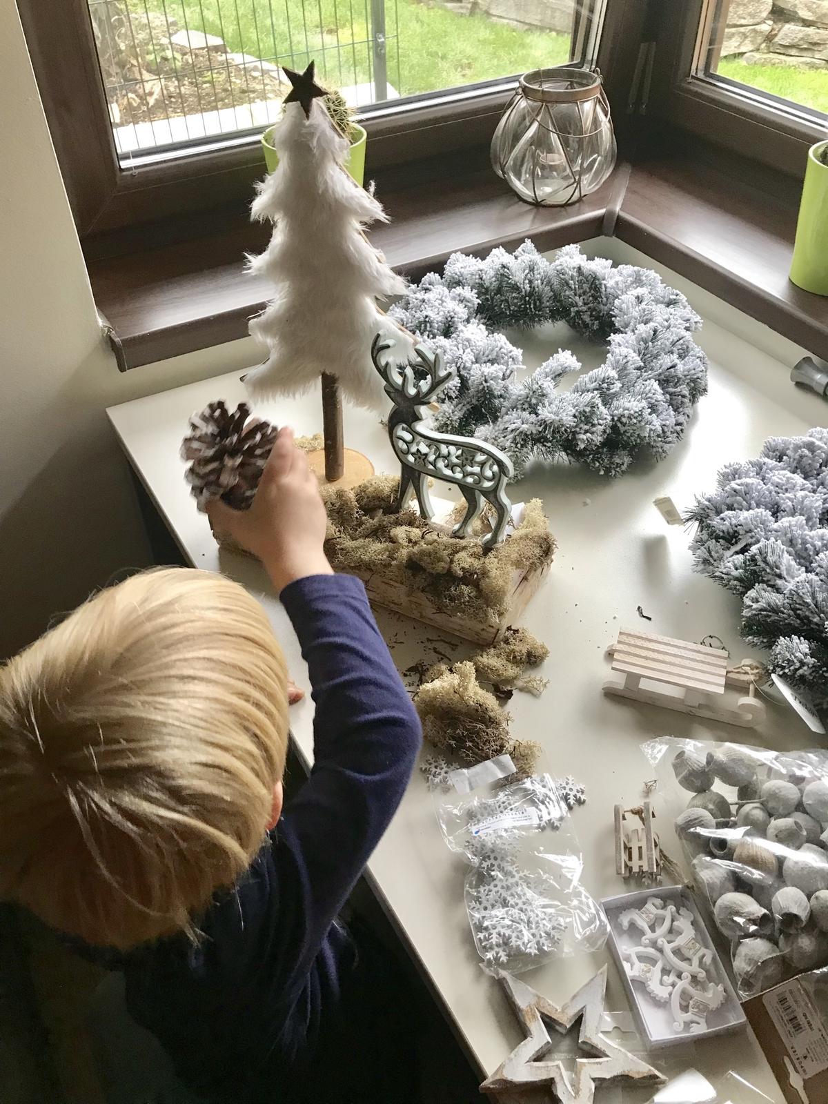 U babky máme tvorivú chvíľku 🌲❄️ Alex pomocník najväčší dekoratér ❤️