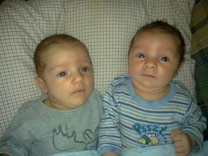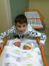 Tak jsme už tady…….Jmenuji se Bořek a narodil jsem se 4.1. 2010 císařským řezem v 22:42 hodin s mírami 3000 gr a 49 cm a já sem Bruno a narodil jsem se jako druhý v 22:44 s mírami 3150 gr a 49 cm.