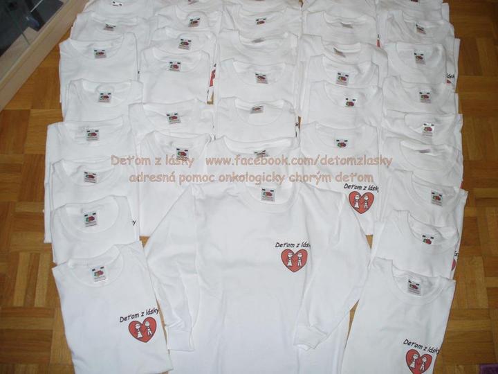 DEŤOM Z LÁSKY-adresná pomoc onkologicky chorým deťom..... AHA pozrite na nové tričká s našim logom, náklady na výrobu a poštu sú 8 eur, koľko má hodnotu pre vás? Čím vyššiu hodnotu pre vás bude mať, tým viac pomôžete našim onkologicky chorým deťom 🙂 Mám aj pánske, aj dámske 🙂 a verím, že sa nájdu dobrí ľudia , ktorí budú tieto naše trička nosiť a možno si tak urobia pekný pocit pri srdiečku a dobrý skutok hned v začiatku nového roka 🙂 Ak vás to zaujalo, no a aj vy by ste také chceli nosiť, tak sa mi prosím ozvite cez ip, alebo na 0903/366516 Ďakujem!!! dávam do pozornosti aj moju fb stránku: www.facebook.com/detomzlasky