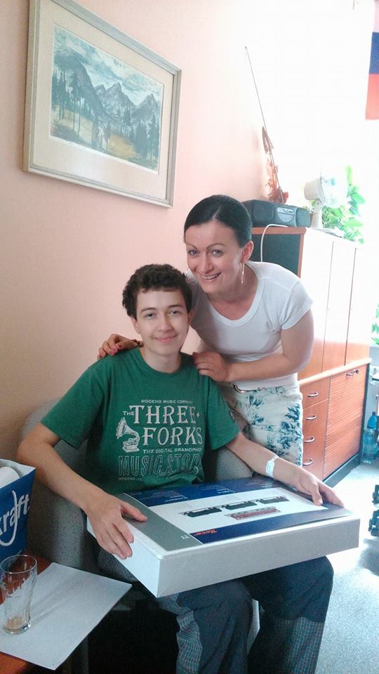 A keďže sa snažíme raz za čas plniť aj osobité želania detí, ktoré sa liečia na onkologické ochorenie, tak tentokrát keď sme vedeli, že Marcelko žije lokomotívami, sám si zostavuje vlastný model železničky, všetok svoj čas venuje tomuto svojmu koníčku, ktorý mu pomáhal prekonať najťažšie chvíle počas liečby.... tak som veľmi šťastná, že Janka Hodrušská, s ktorou som sa nakontaktovala cez internet prisľúbila, že s kolegami Marcelkovi prekvapenia zoženú A tak sa aj stalo Pozrite na krásnu fotku, dnes si bol Marcelko osobne prevziať darček u Janky v práci