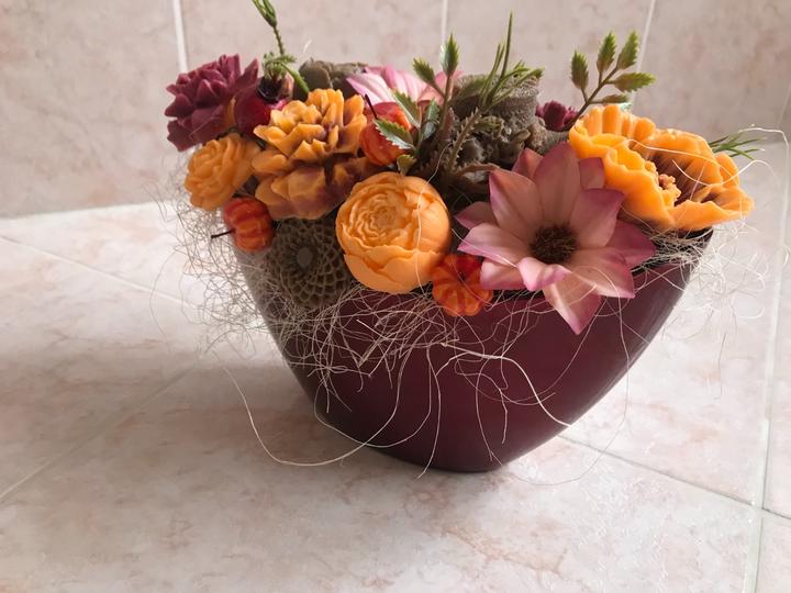 Niečo z mojej tvorby 🤗💐💐💐 veľmi rada robím tieto kytičky a male mydielka. Je to super relax 😊