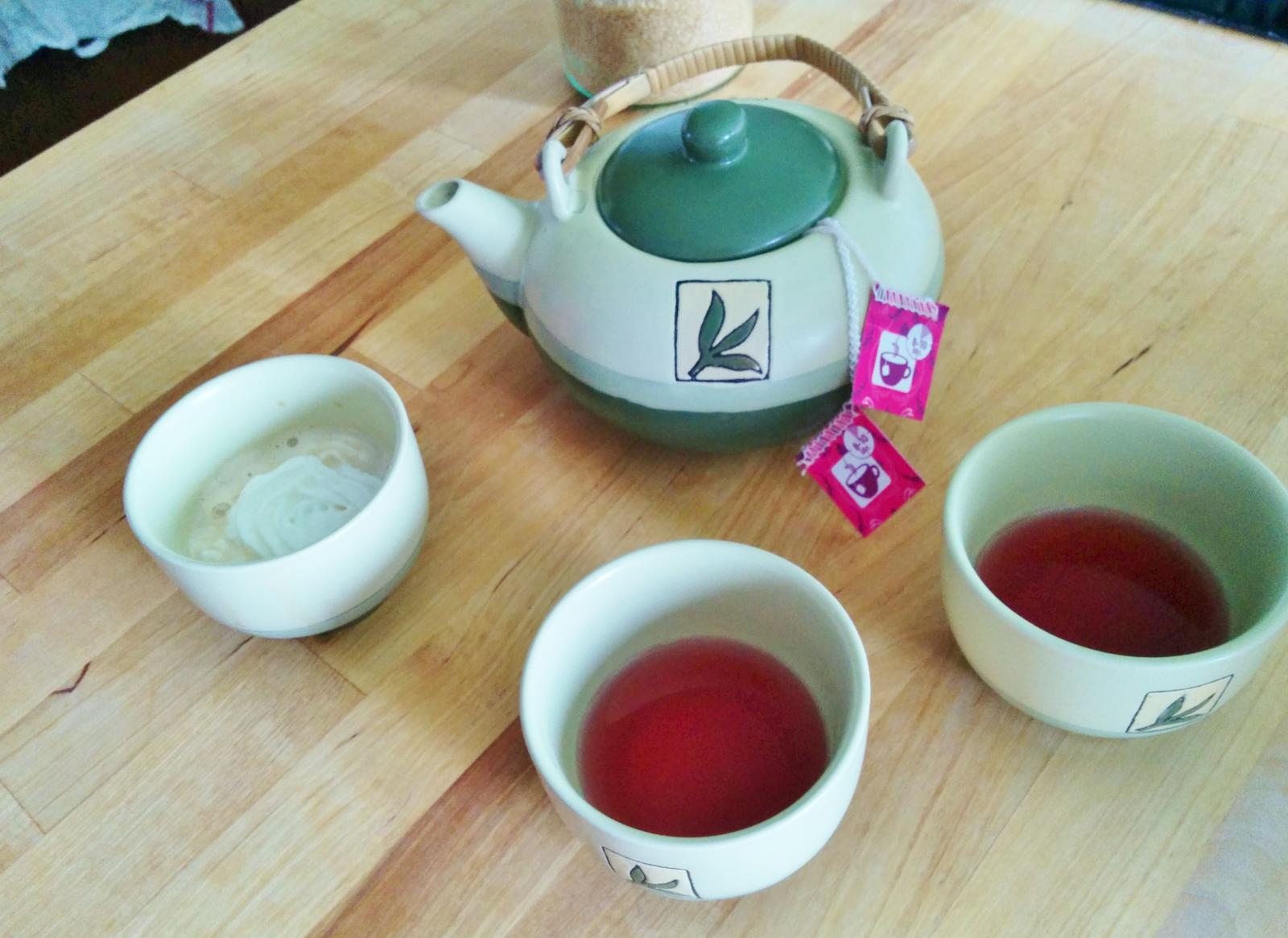 Celkom sľubne vyzeral DGP Ibištek & Citrónová myrta, bylinno-ovocný čaj, aj Božka si ho ako prvý vytiahla z krabice, že "otojiť, otojiť!", aj sme si ho ihneď pripravili. No moje očakávania v tomto prípade neboli naplnené. Obal parádny, vidno ako vyzerajú vrecká už pred otvorením, bavlnené vrecká čajov aj ich tvar sú ešte parádnejšie. Chuť mne ale prišla až agresívna. Robíme doma čaje na hektolitre do obrovského džbánu. Tento som pre efekt urobila do menšieho, ale stále som použila viac vody ako píšu v návode. A aj tak bol príliš "prechutený". Možno tá citrónová myrta je moc silná pre naše jemné jazýčky, neviem. Džbánik sa nedopil. Osladila som ho aj trstinovým cukrom, aj skúsila zriediť vodou, ako to niekedy robíme. Na druhý deň som ho znova urobila, a ani druhý džbánik sa nedopil. Asi čaj niekomu darujem.
