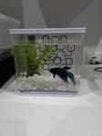Do takého maličkého akvária sú ideálne slimáky či krevetky, možno rybka beta. Pre všetko je ideálne mať tam ale aj nejaké živé rastliny a teda samozrejme aj substrát, svetlo, filter.... Vrchnák nie je vždy potrebný.