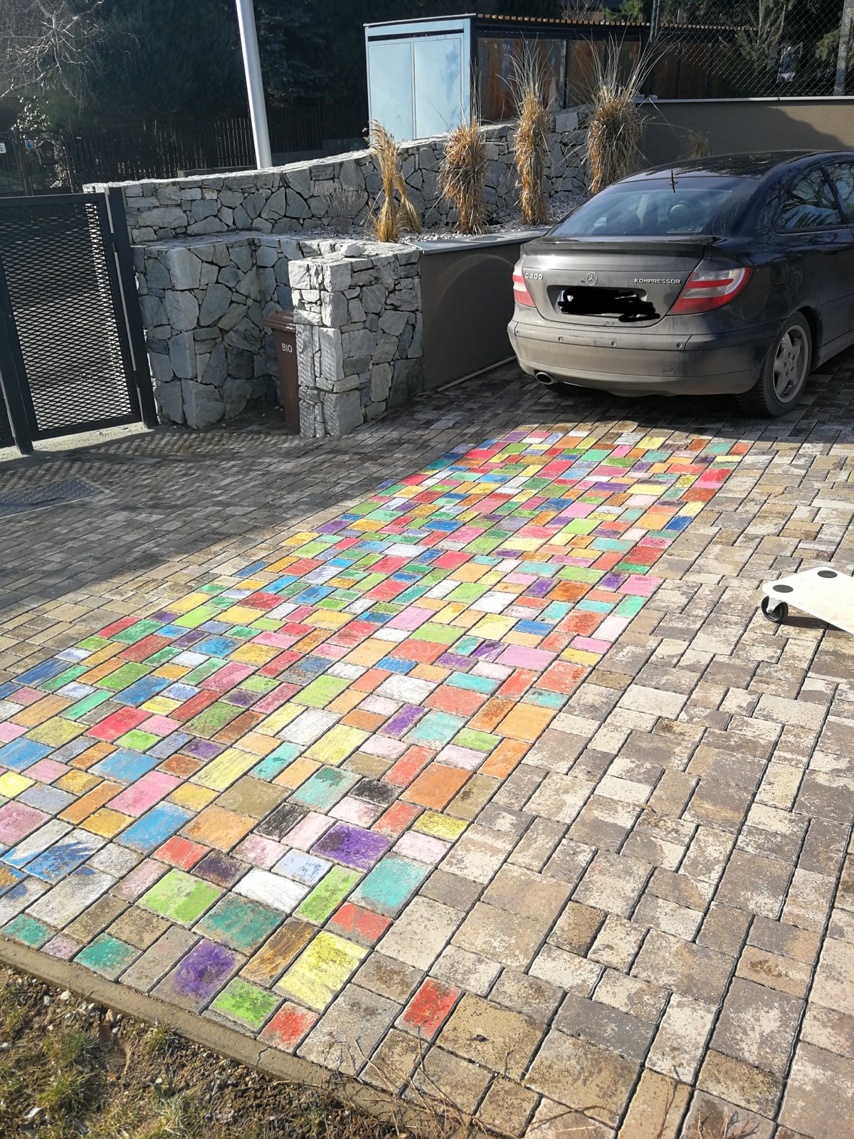 My sme zasa vyuzili dlazobne kocky, ktore sme vyfarbovali. Vydrzalo to asi dva mesiace, kym to dazd uplne vymyl. 😁