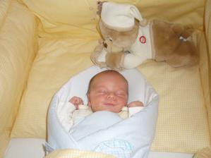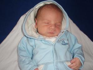 Termín bol 14. 12., ale ja som sa vypýtal na svet už 9.12. o 20:15. Maminu som trochu potrápil, lebo som mal šnuru okolo krku, ale nakoniec to dobre dopadlo. Moje krásne miery pri narodení boli 3550 g a 50 cm.