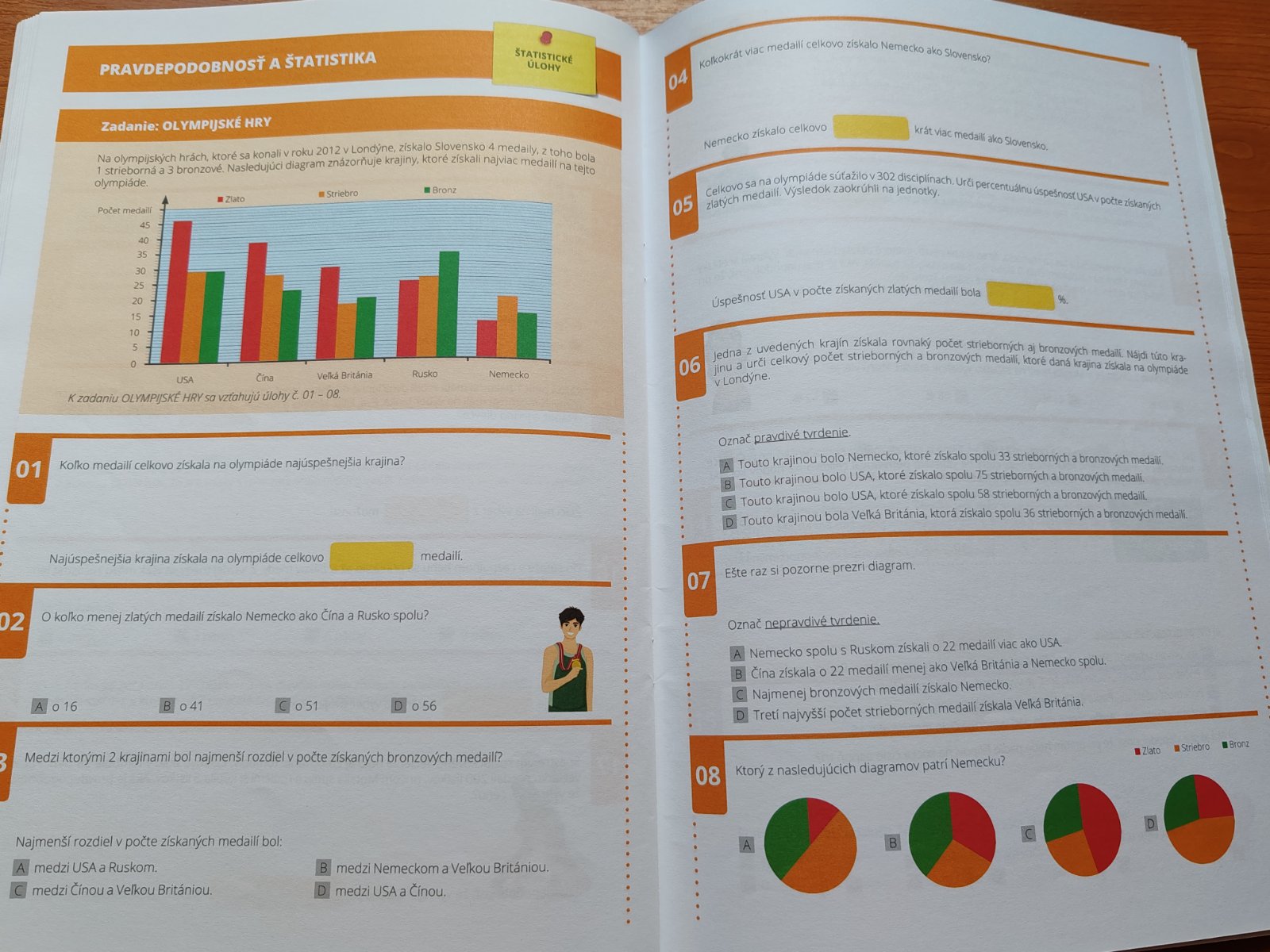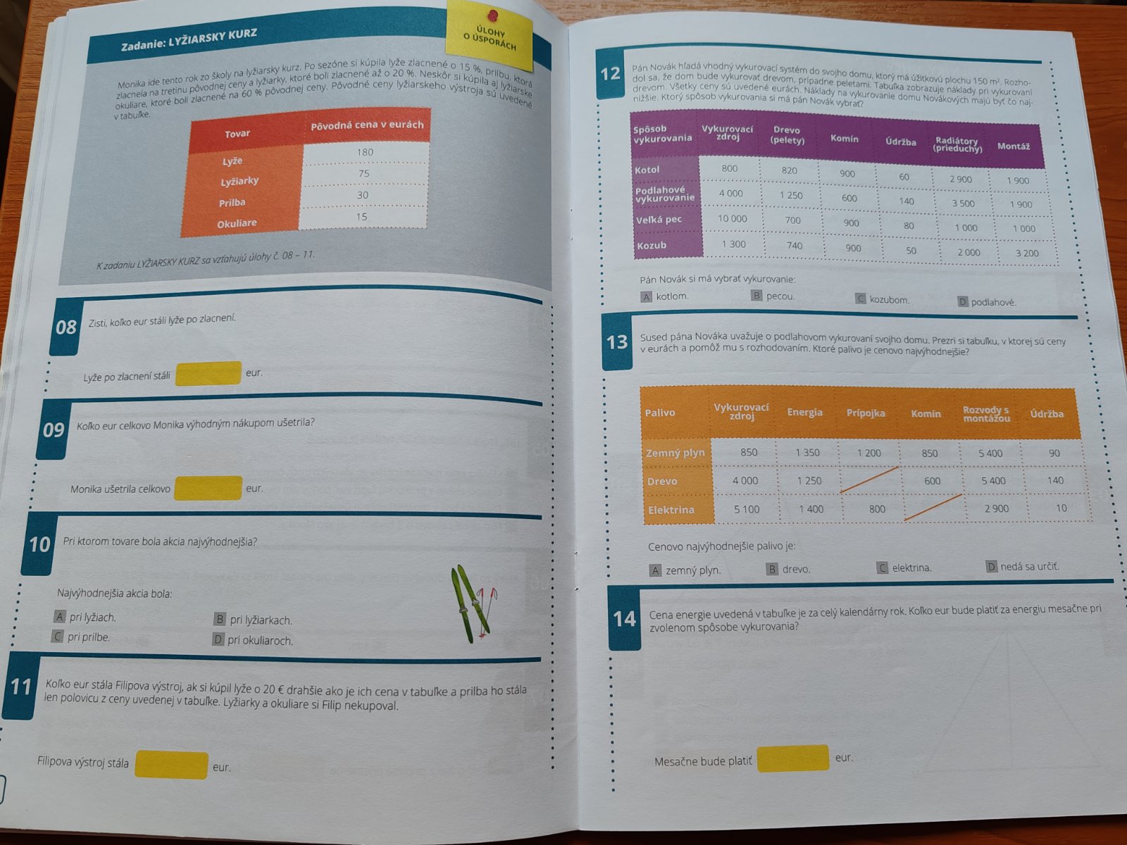 Mame tieto, ale aj dalsie z ineho vydavatelstva. Je to dobre, trenuje tie testy olus teraz maju v skole hodinu matuky a SLJ navye kazdy tyzden ako doucovanie. Vyuziva to 5 ziakov. Ale moj syn hovori, ze je to dobre na trening